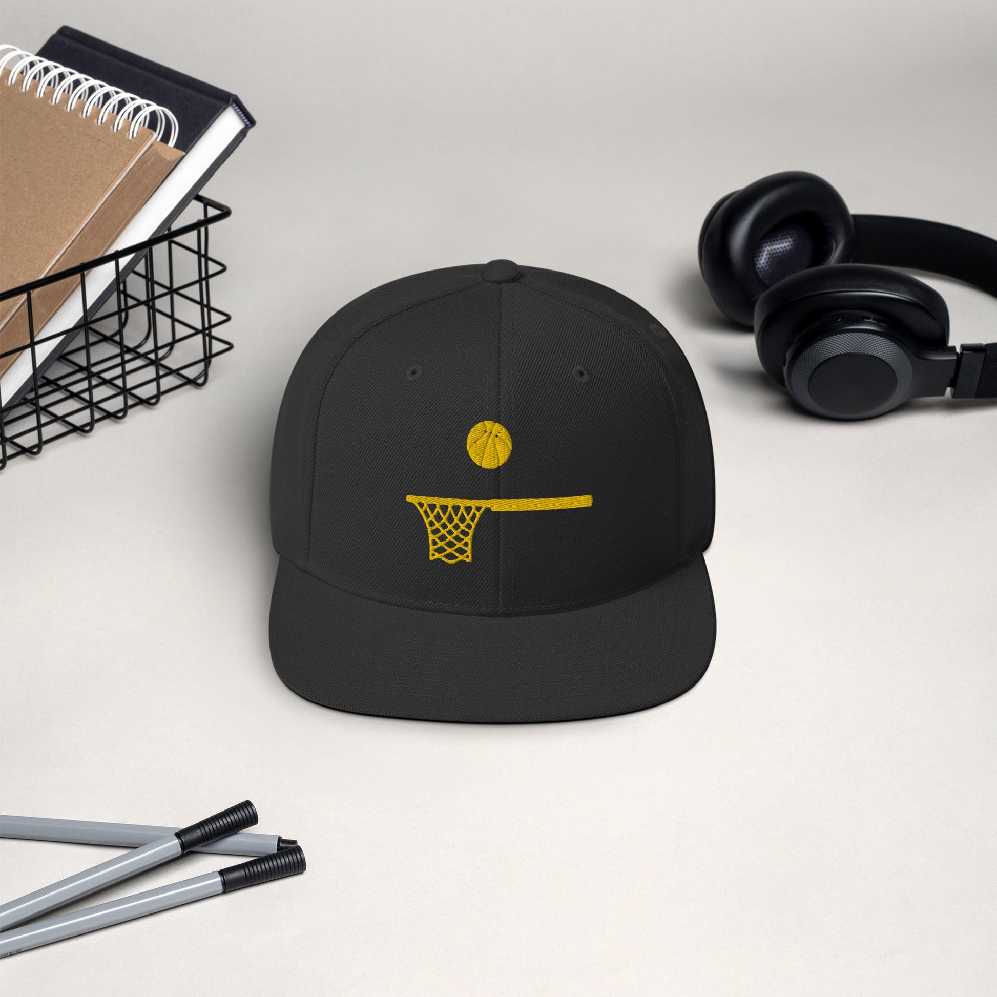 Embroidered Gold Ball and Hoop Snap Back